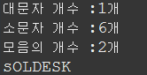 //문1) 대문자, 소문자의 갯수를 각각 구하시오