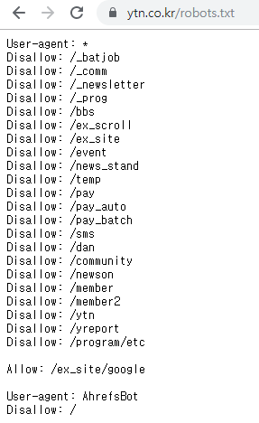 - 로봇이 수집을 못하게 막을 목적으로 로봇의 접근 관련 내용(크롤링 허가/불허의 여부)을 robots.txt에 적어두는 내용