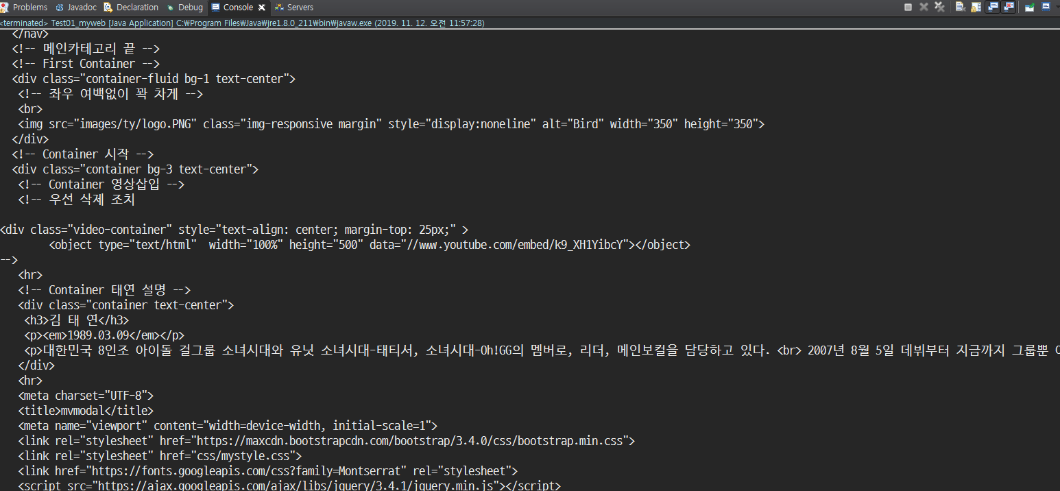 //→ 웹브라우저의 페이지 소스보기와 동일