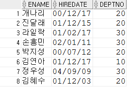 where hiredate < to_date('05/01/01', 'YY/MM/DD') order by hiredate;