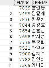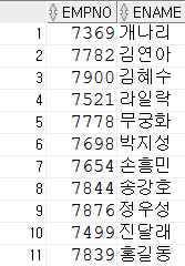 select empno, ename --2) 칼럼 선택