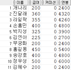 <'연봉' 칼럼을 만들지 않고 바로 적용> → comm와 연봉 모두 null 값이 나옴