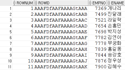⊙ rownum : 행(레코드) 번호 (주로 메이커에서 알아서 붙여주는 번호)