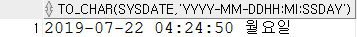 ⊙ to char(날짜, '출력형식') : 날짜자료형의 데이터를 문자변환한 함수