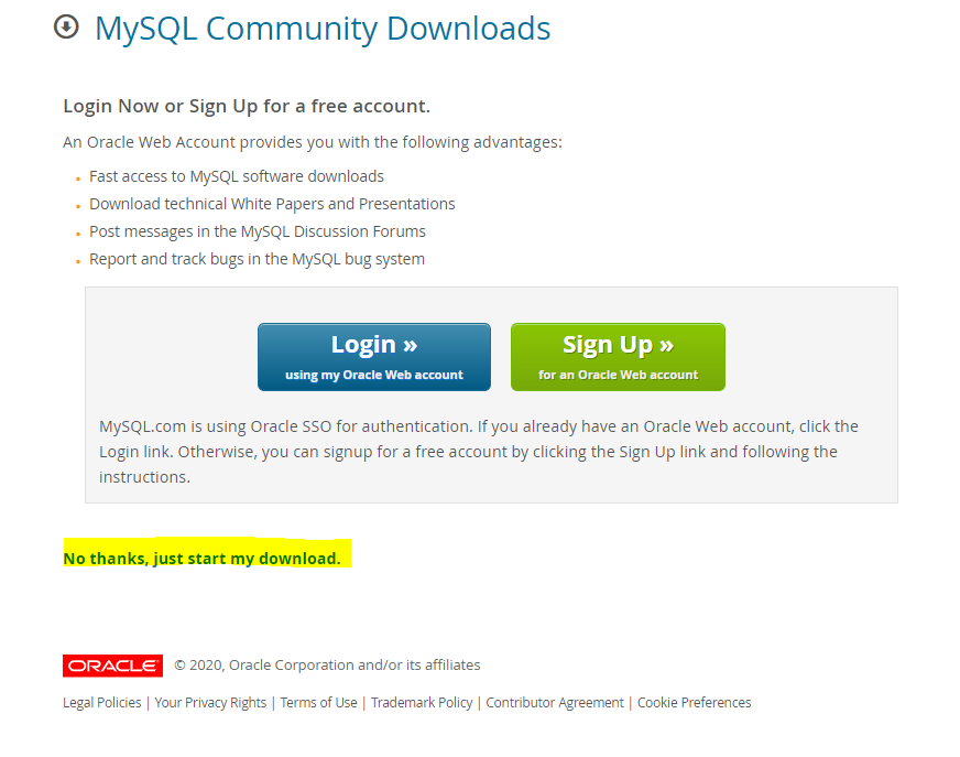 Select Operating System: Select Operating System… Microsoft Windows Select OS Version: All Windows (x86, 32-bit) Windows (x86, 32-bit), MSI Installer 8.0.20 24.4M (mysql-installer-web-community-8.0.20.0.msi) MD5: 26ae47807122bf0052b99ebf893b0dac | Signat