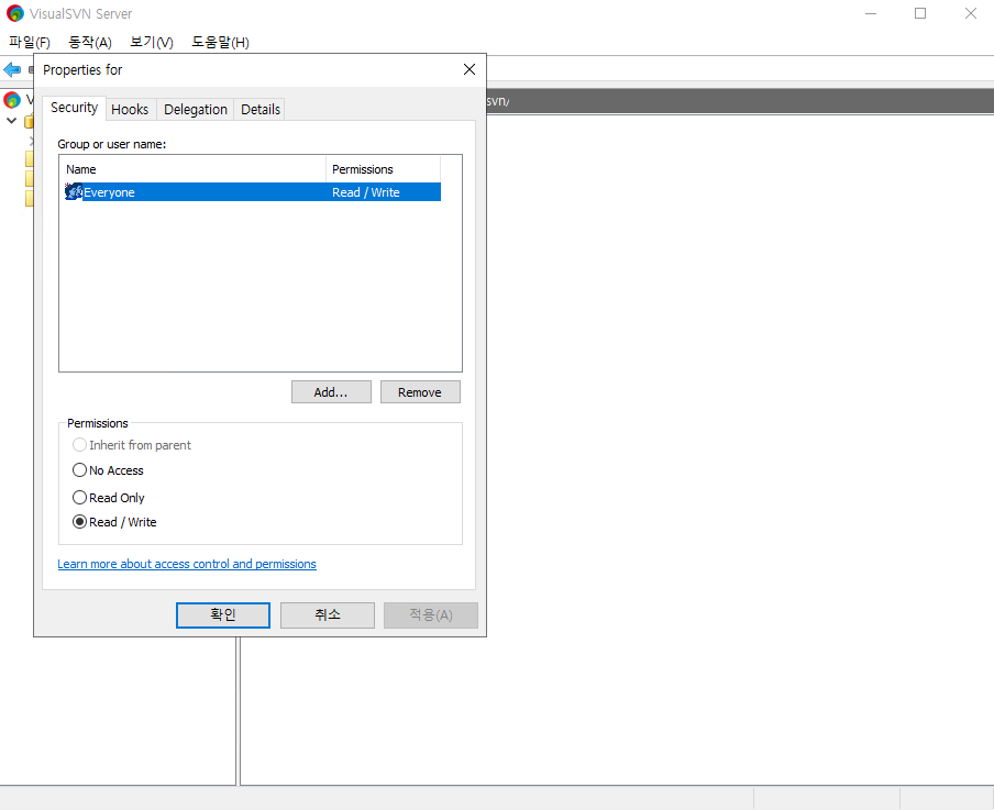 VisualSVN Server 사용자 등록, 권한부여