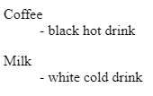 <dd>- black hot drink</dd>