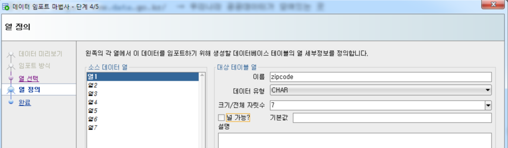 ⊙ zipcode를 create 하지말고 '데이터 임포트' 수행