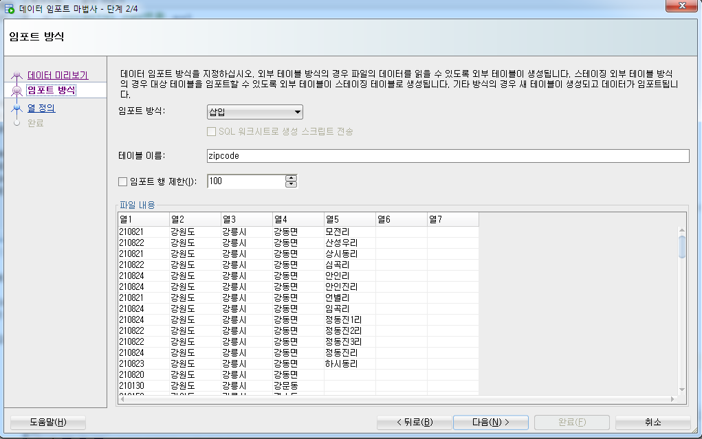 ⊙ 우편번호 테이블 생성