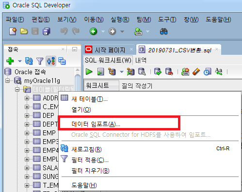 [SQL] CSV 변환 (외부 데이터를 이용하여 테이블 생성) 본문
