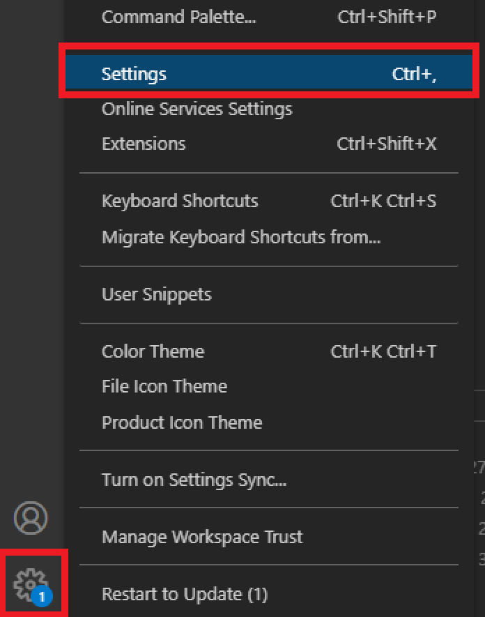 1. 좌측 하단의 톱니바퀴 버튼 클릭 > Settings