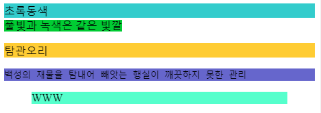 <span style='background : #00cc33'>풀빛과 녹색은 같은 빛깔</span>