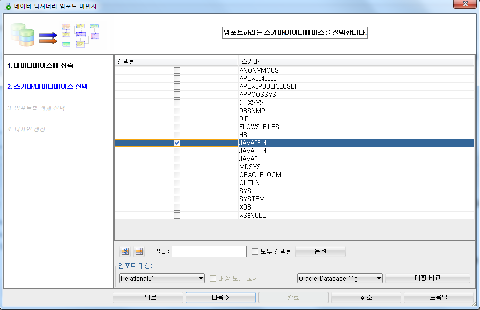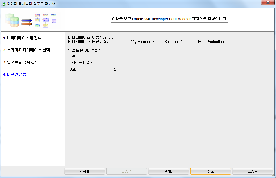 1. 파일 → Data Modeler → 임포트 → 데이터 딕셔너리