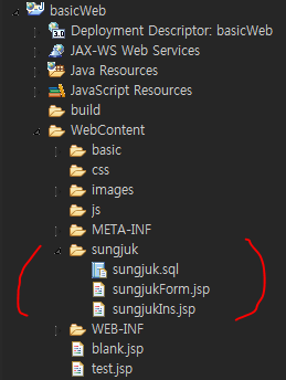 ⊙ lib 폴더의 경로 : basicWeb/WebContent/WEB-INF/lib