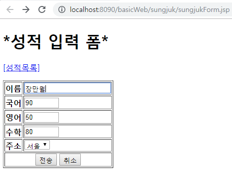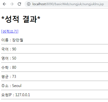 ⊙ sungjukForm.jsp 성적쓰기 → sungjukIns.jsp