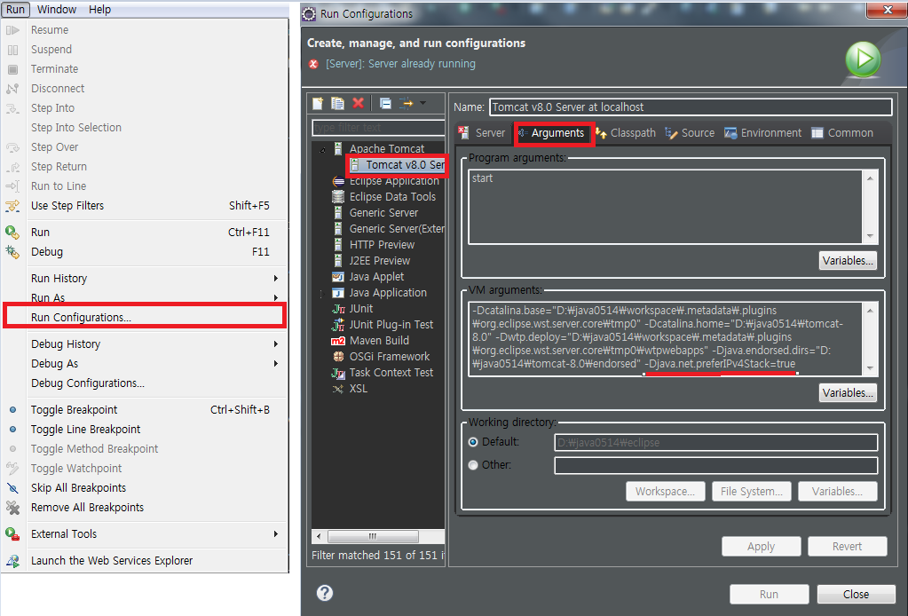 ⊙ '공백1칸 주고 -Djava.net.preferIPv4Stack=true' 넣기