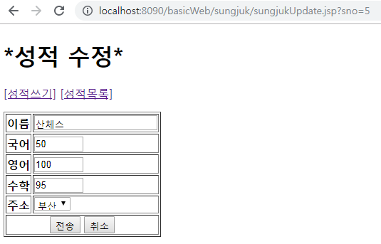 3) 해당 데이터를 수정한다 →sungjukUpdateProc.jsp