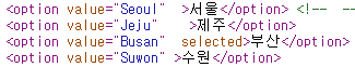 <option value="Seoul" <%if(addr.equals("Seoul")){out.print("selected");}%>>서울</option>