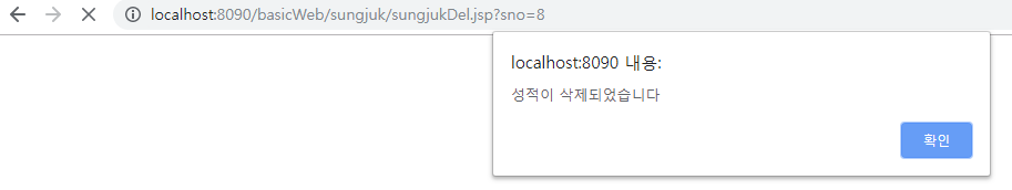 out.println(" location.href='sungjukList.jsp';"); //삭제가 되면 성적이 삭제되었다는 알림창과 함께 성적목록으로 이동