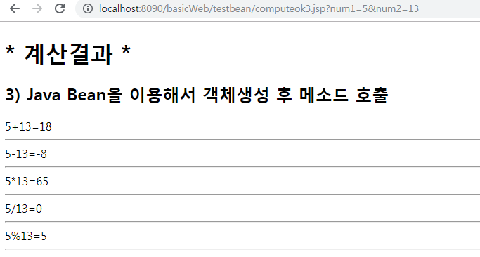 <h2>3) Java Bean을 이용해서 객체생성 후 메소드 호출</h2>