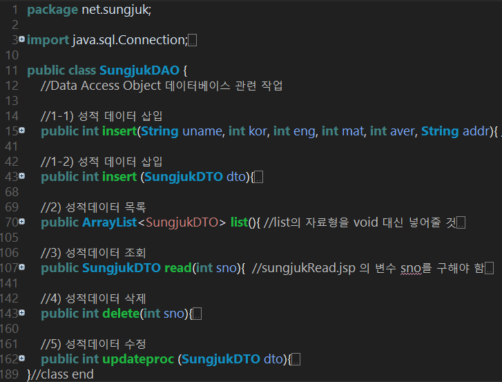 - Java Resources → src → net.sungjuk 패키지 생성 → SungjukDAO.java / SungjukDTO.java 생성