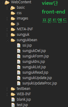 ★ 페이지는 서로 다른 페이지, 연결 된 것처럼 보이지만 자료를 끌어오는 것은 SungjukDAO.java, 보여주는 것은 sungjukList.jsp