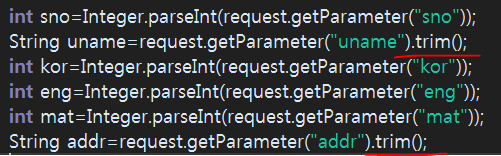 방법1. sungjukUpdateProc.jsp의 null값 들어갈 수 있는 String 변수에 trim() 적용해준다