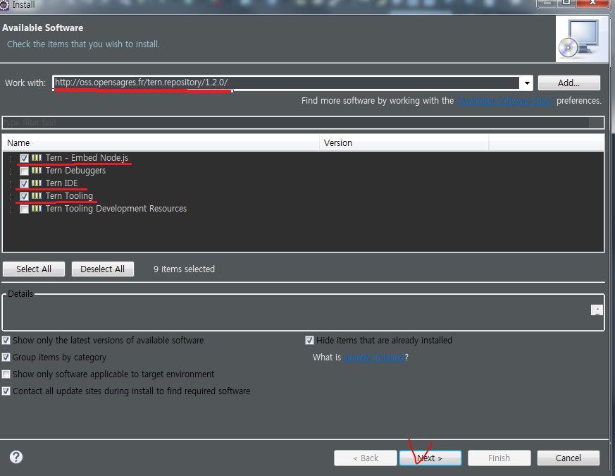 2) http://oss.opensagres.fr/tern.repository/1.2.0/ 검색
