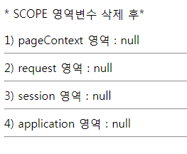 out.print("<p> * SCOPE 영역변수 삭제 후* </p>") ;