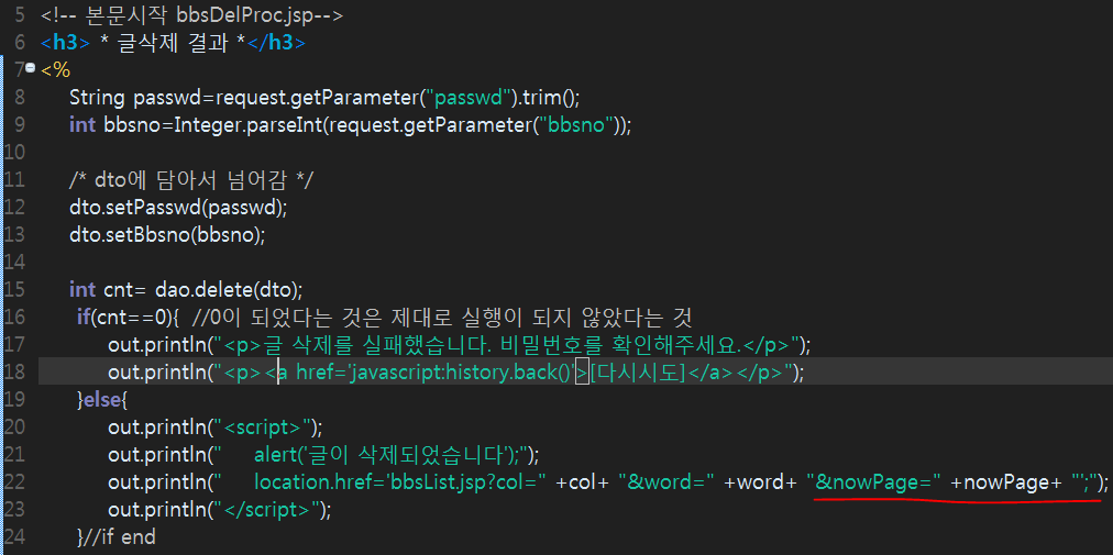 //한 페이지당 출력할 글의 줄수 (5줄로 하려고 변수 지정)