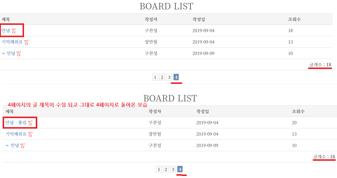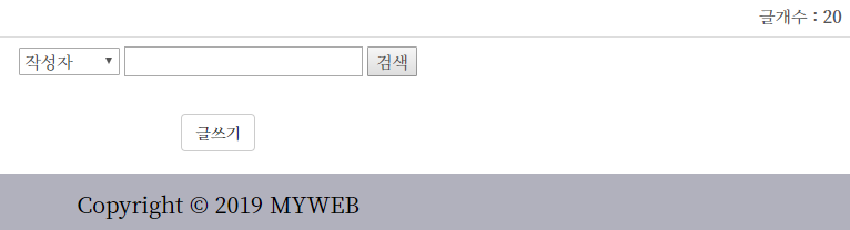 3) bbsList.jsp에서 지정한 위치인 맨 아래쪽에 '글 개수'가 나타남