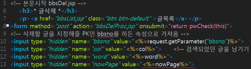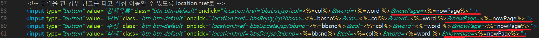 - nowPage를 지정해서 현재의 페이지를 만들고 숫자로 1 2 설정 (ssi.jsp 에 '현재 페이지' 만들기)